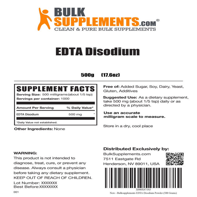 Bulksupplements.Com EDTA Disodium Powder - Kidney Support - Liver Support (500 Grams) - 500 Grams (1.1 Lbs) is backordered and will ship as soon as it is back in stock.