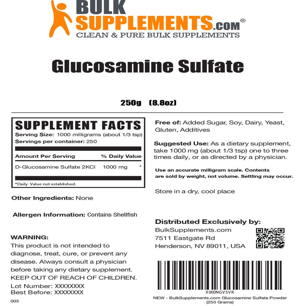 Bulksupplements.Com Glucosamine Sulfate Powder, 1000Mg - Promotes Bone & Joint Health (250G - 250 Servings) - 250 Grams (8.8 Oz) is backordered and will ship as soon as it is back in stock.