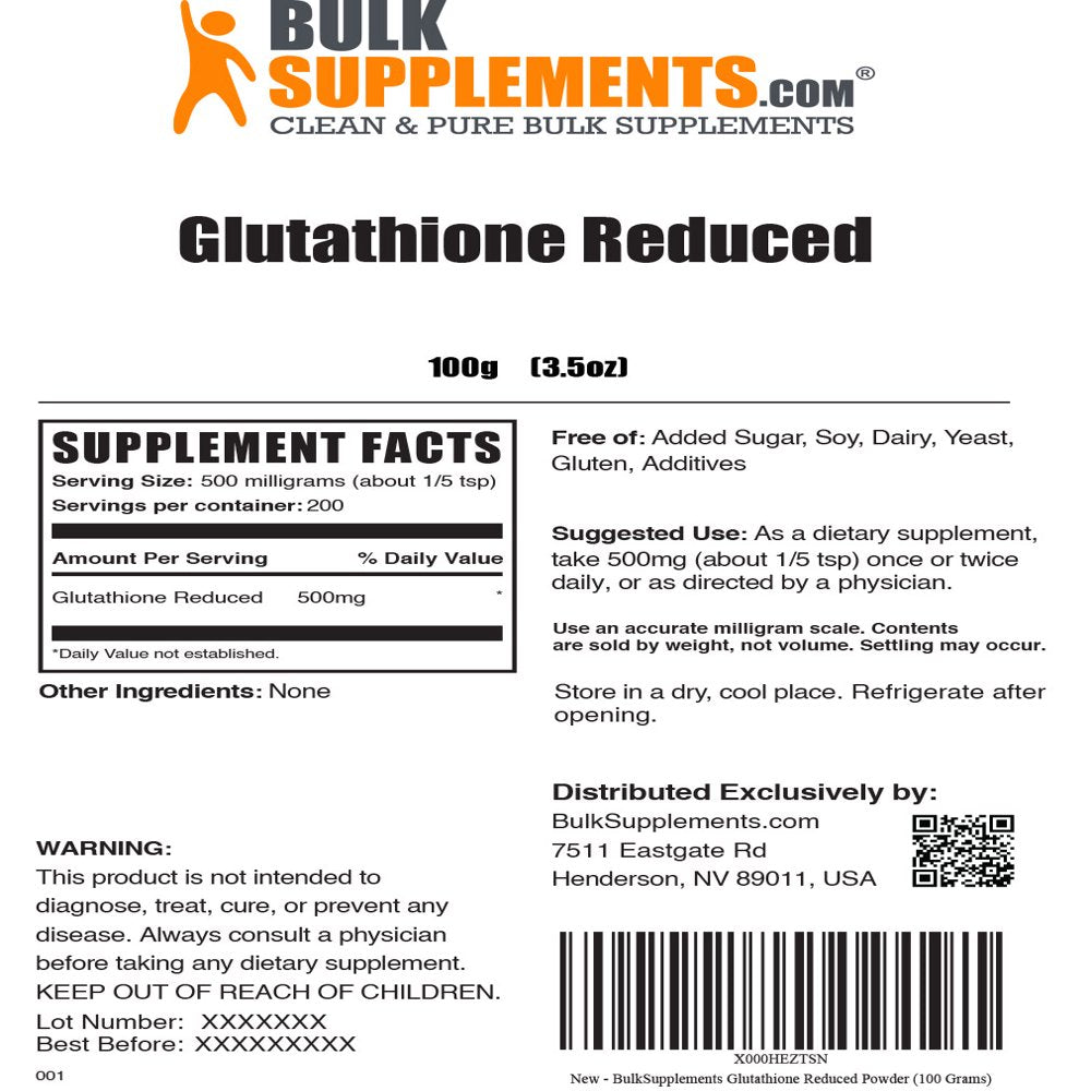 Bulksupplements.Com Glutathione Reduced Powder (100G - 200 Servings)