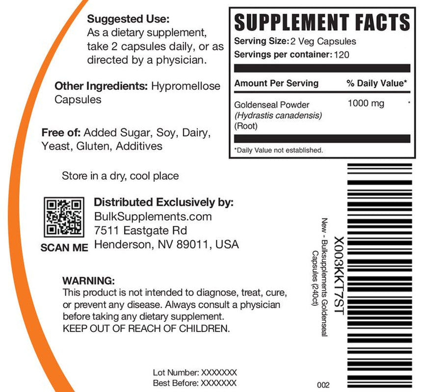 Boosts Immune Health - Goldenseal is a key ingredient for boosting your immune system.* Not only that it helps boosts immune health, Goldenseal, in powdered form, helps fortify the body's natural defenses, making it an essential choice for those looking for an all-natural way to support their health.*, Supports Respiratory Health - Goldenseal, a berberine supplement, is a natural antioxidant, and anti-inflammatory herb which may help support overall respiratory health, including sinus and the lungs.* It's a natural way to support the respiratory tract and may help clear airways, making it an addition to any healthy regimen.*, Contributes to Oral Health - Goldenseal Powder, or Golden Root Powder, may help support overall oral health.* Not only does it support immune health, Goldern Seal also helps the support the teeth, while also promoting gum health.* Add it to your daily routine and keep a healthy smile!, Pure and Natural Supplement - Our Goldenseal Powder, or Goldenseal Root Powder, is sourced from natural and pure ingredients, with no fillers, binders, additives, and especially artificial flavors of any kind. It's also gluten free, dairy free, soy free and no added sugar. Goldenseal Powder is a great way to get the benefits of goldenseal root without having to eat it!, High Quality - All products by BulkSupplements are manufactured according to cGMP Standards to ensure the highest quality for manufacturing, packaging, labeling, and holding operations. We ve made a significant investment in our in-house lab so we can test our products at multiple stages during production. We third party test products, procedures and equipment when required to ensure compliance, standards and consistency.