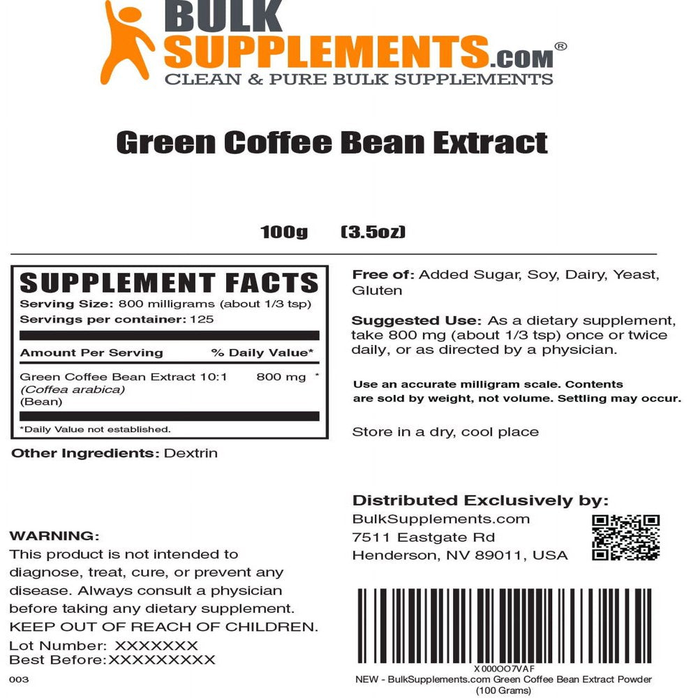 - Green Coffee bean Extract Powder, 800mg by BulkSupplements.com