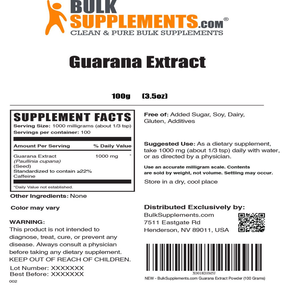 - Guarana Extract Powder, 1000mg by BulkSupplements.com