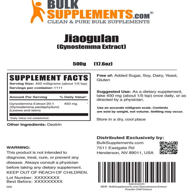 BulkSupplements.com Gynostemma Extract, Jiaogulan Extract, Features: