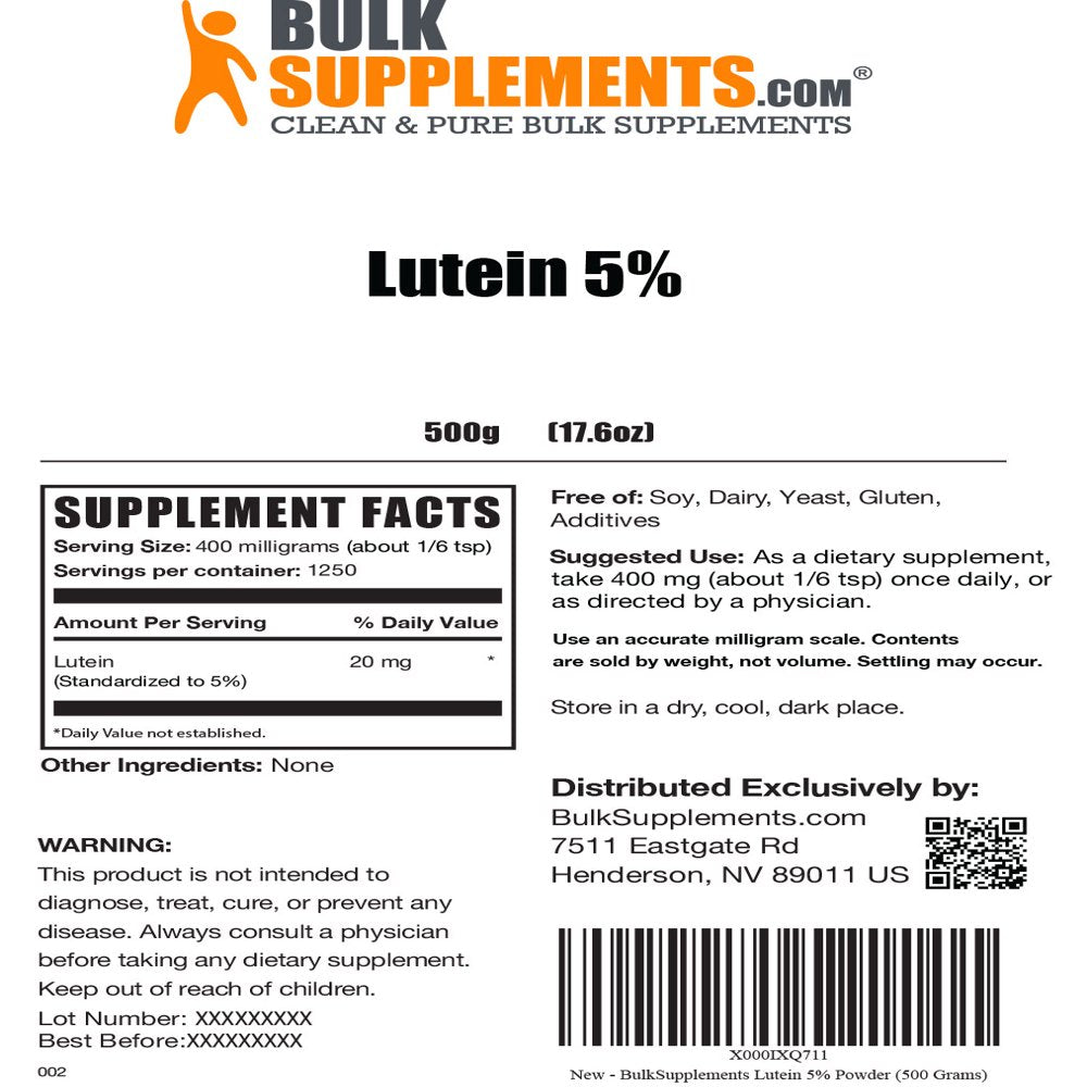 Bulksupplements.Com Lutein 20Mg 5% Powder - Eye Vitamins - Vision Supplements - Eye Vision Supplement - Vegan Lutein (500 Grams) - 500 Grams (1.1 Lbs) is backordered and will ship as soon as it is back in stock.