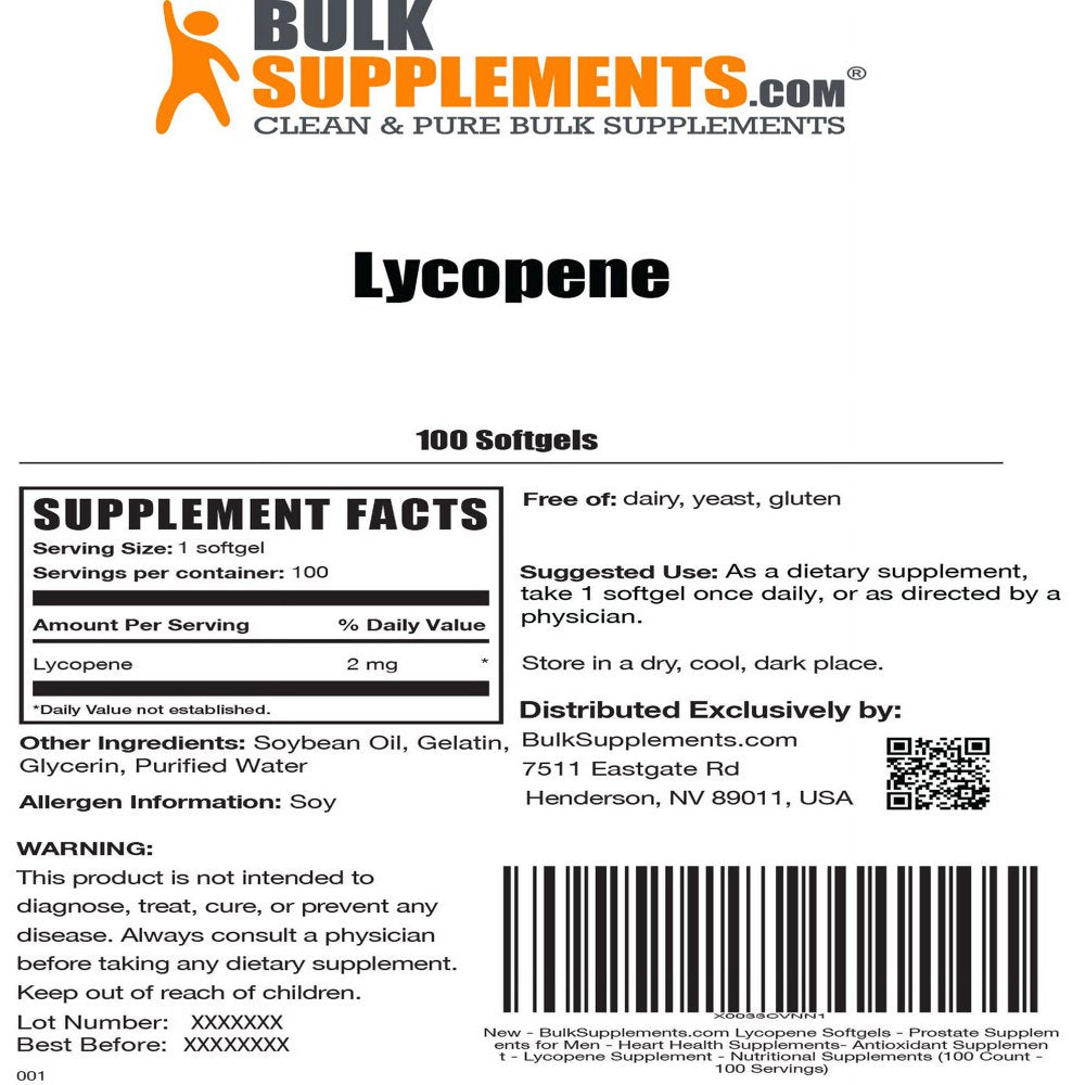 Bulksupplements.Com Lycopene Softgels, 2Mg - Supports Nerve Function (100 Softgels) is backordered and will ship as soon as it is back in stock.