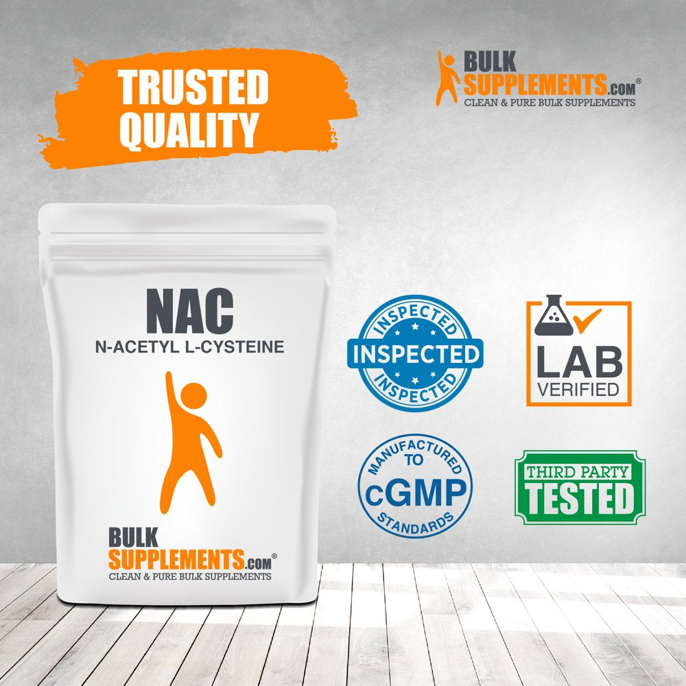N-Acetyl L-Cysteine, also called acetylcysteine, is derived from the amino acid, L-Cysteine, and is a source of Cysteine for the body. All products at BulkSupplements are manufactured according to cGMP Standards to ensure the highest quality for manufacturing, packaging, labeling, and holding operations. We’ve made a significant investment in our in-house lab so we can test our products at multiple stages during production. We third party test products, procedures and equipment when required to ensure compliance, standards and consistency.
