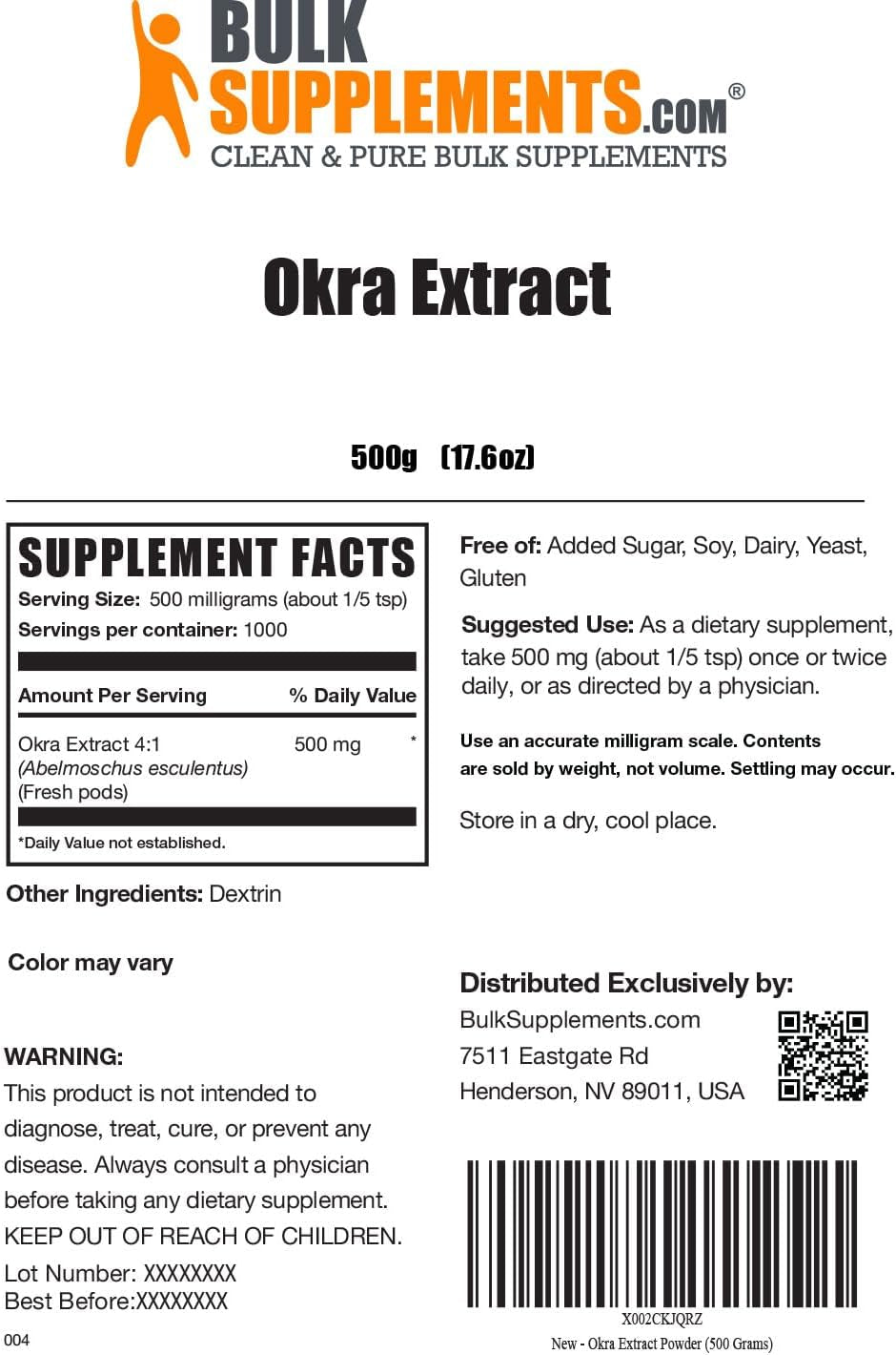 BULKSUPPLEMENTS.COM Okra Extract Powder - High Fiber Supplements - Digestion Supplement - Bowel Movement Supplements (500 Grams - 1.1 Lbs) - 1.1 Pound (Pack Of 1) is backordered and will ship as soon as it is back in stock.