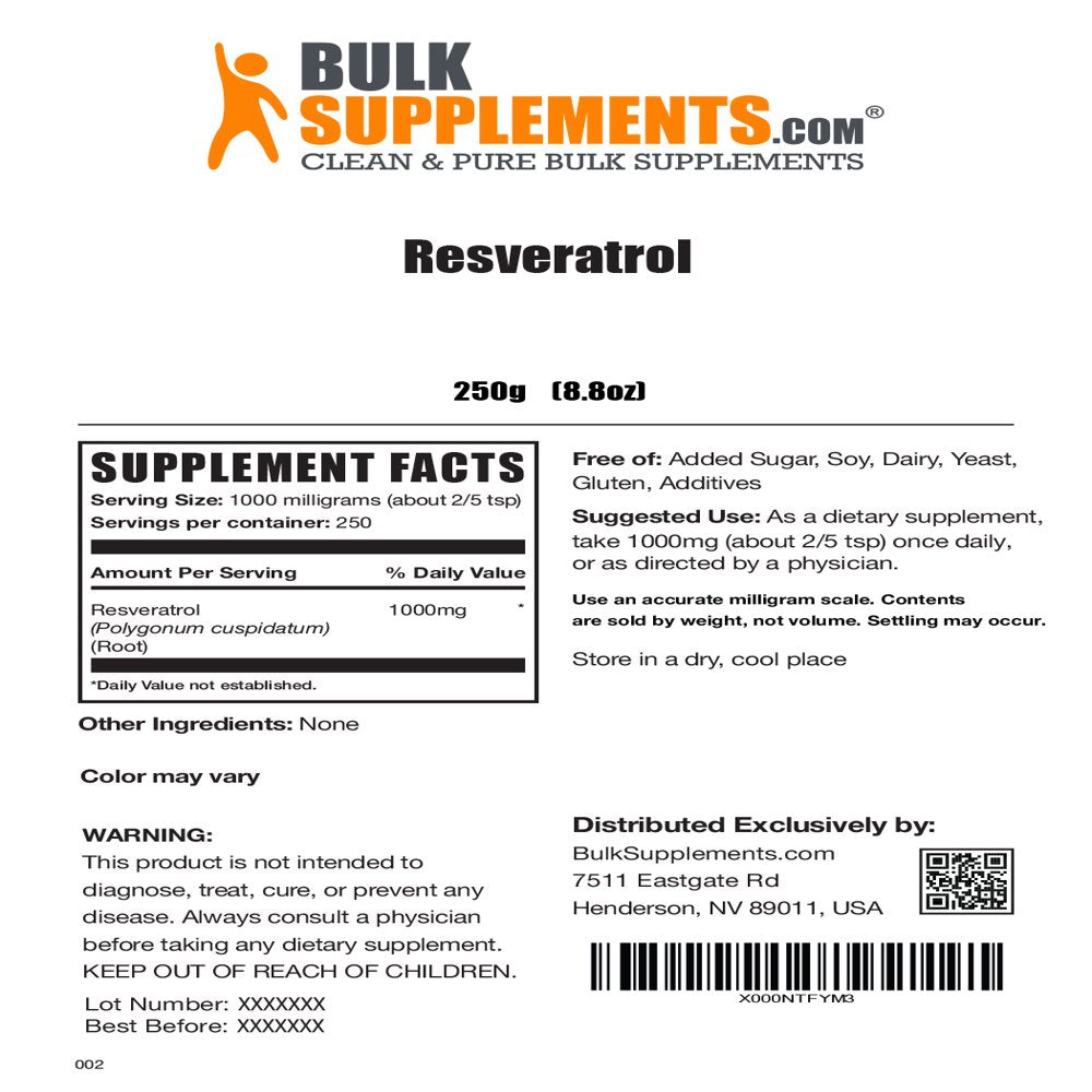 - Resveratrol Powder, 1000mg by BulkSupplements.com