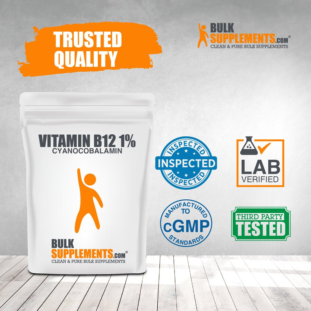 - Vitamin B12 1% (Cyanocobalamin) Powder, 20mg by BulkSupplements.com