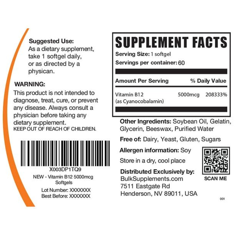 - 💊 BulkSupplements.com Vitamin B12 Softgels, 5000mcg