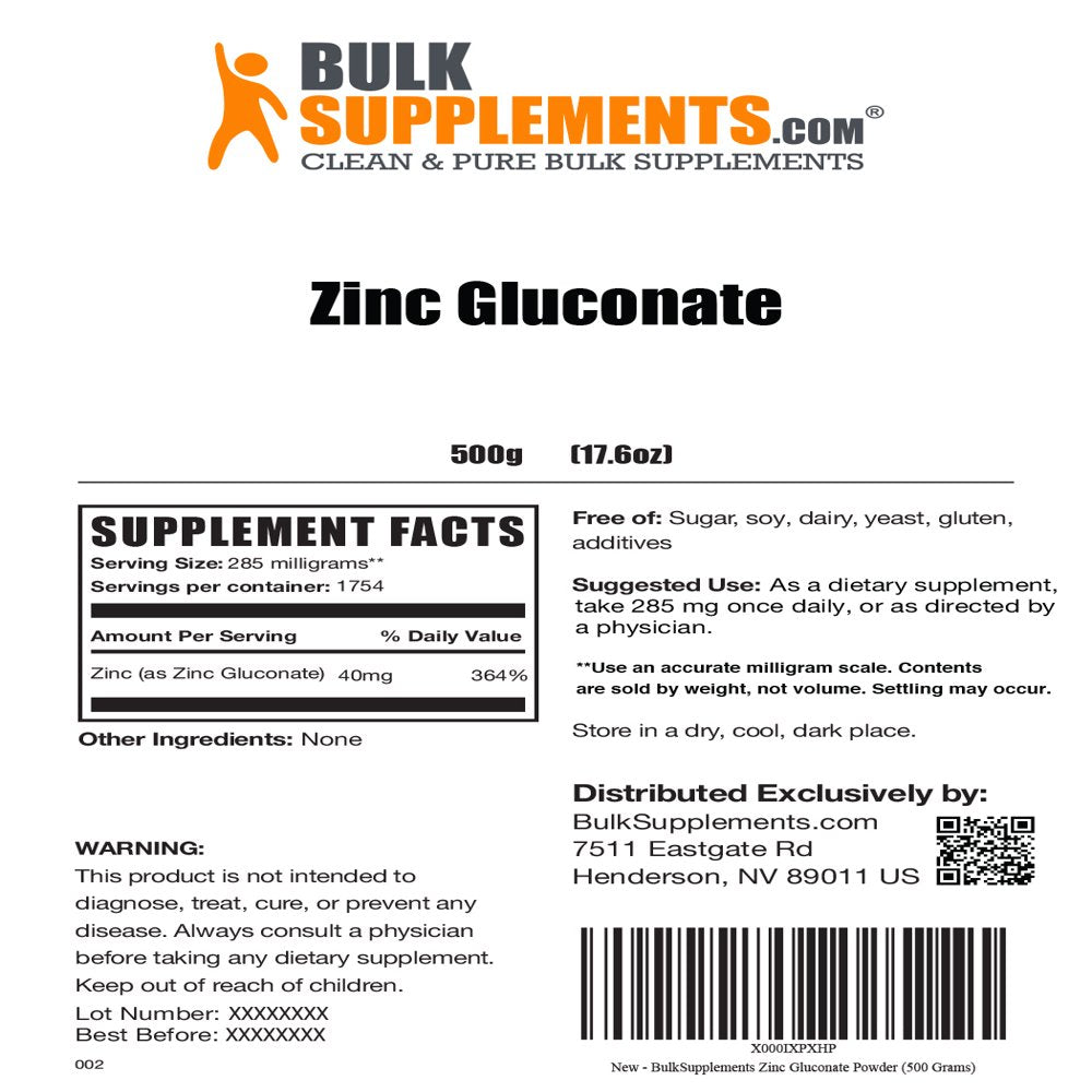 - Zinc Gluconate Powder, 285mg by BulkSupplements.com