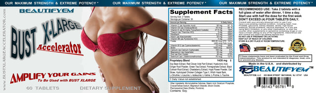 BUST X-LARGE ACCELERATOR Pills has an enhanced amount of Biotin and Collagen to enhance the shape of your growing Bust and to tighten those newly formed tissues. Hyaluronic acid and Witch Hazel extract added to help tighten your Breast and make it more curved. An extra amount of needed 6 types of Amino Acids is incorporated into the formula that helps as a building block for the tissues. BUST X-LARGE ACCELERATOR contains more Phytoestrogenic herbal extracts to help accelerate the process of deposit of fats in the desired area. The BUST X-LARGE ACCELERATOR formula works with all BUST X-LARGE PILLS to maximize the effect, and fasten the gains. Use as an Afternoon dose to Maximize your Gains.