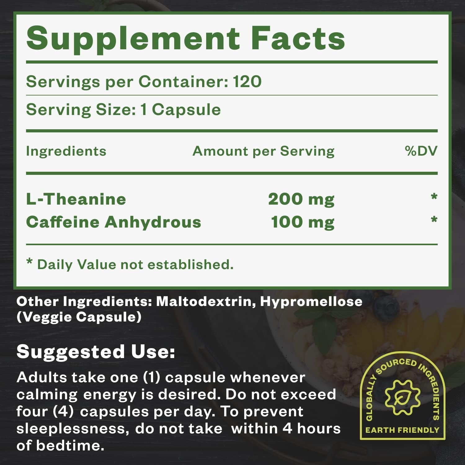 - Energy Supplement: The combination of caffeine and l-theanine in these caffeine pills with l-theanine gives steady energy while promoting relaxation. Our nootropic duo is beneficial and may deliver alertness and a clear focus for daily basis.