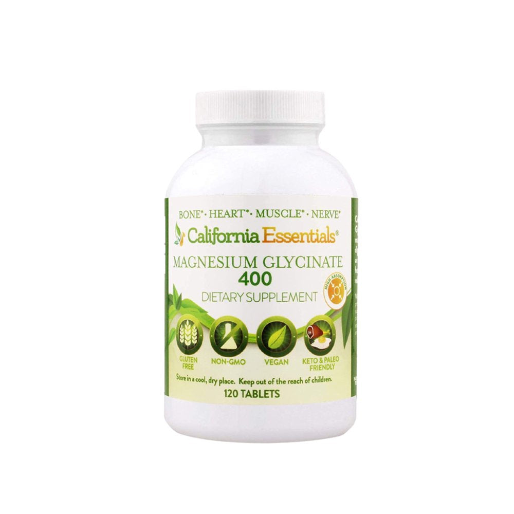 California Essentials Magnesium Glycinate 400 mg 120 Tablets are 100% chelated, high absorption vitamins that can benefit your digestive system and promote more bioavailable and digestible nutrition. There are over 300 enzyme reactions that involve magnesium in the body. In addition to supporting the cardiovascular and nervous systems, bones, blood pressure, and blood sugar balance, it may also relieve muscle cramps, calmness, and improve sleep, as well as relieve leg cramps, restless legs, or restless hearts. This magnesium glycinate tablet may help you support your bones, heart, muscles, and nerves with the right balance for optimum health