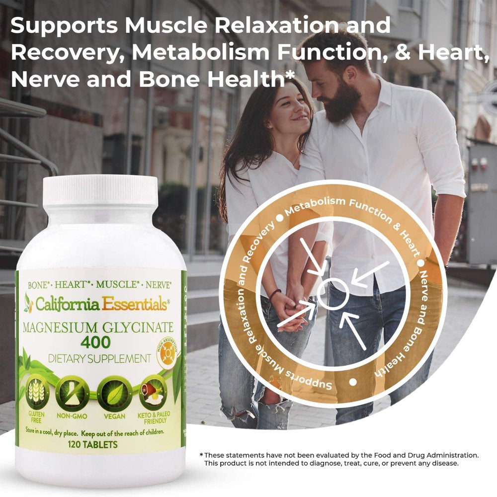 - PROMOTES MUSCLE RELIEF - California Essentials magnesium glycinate dietary supplements support muscle growth, recovery, and repair and may help calm and relax muscles and relieve cramps