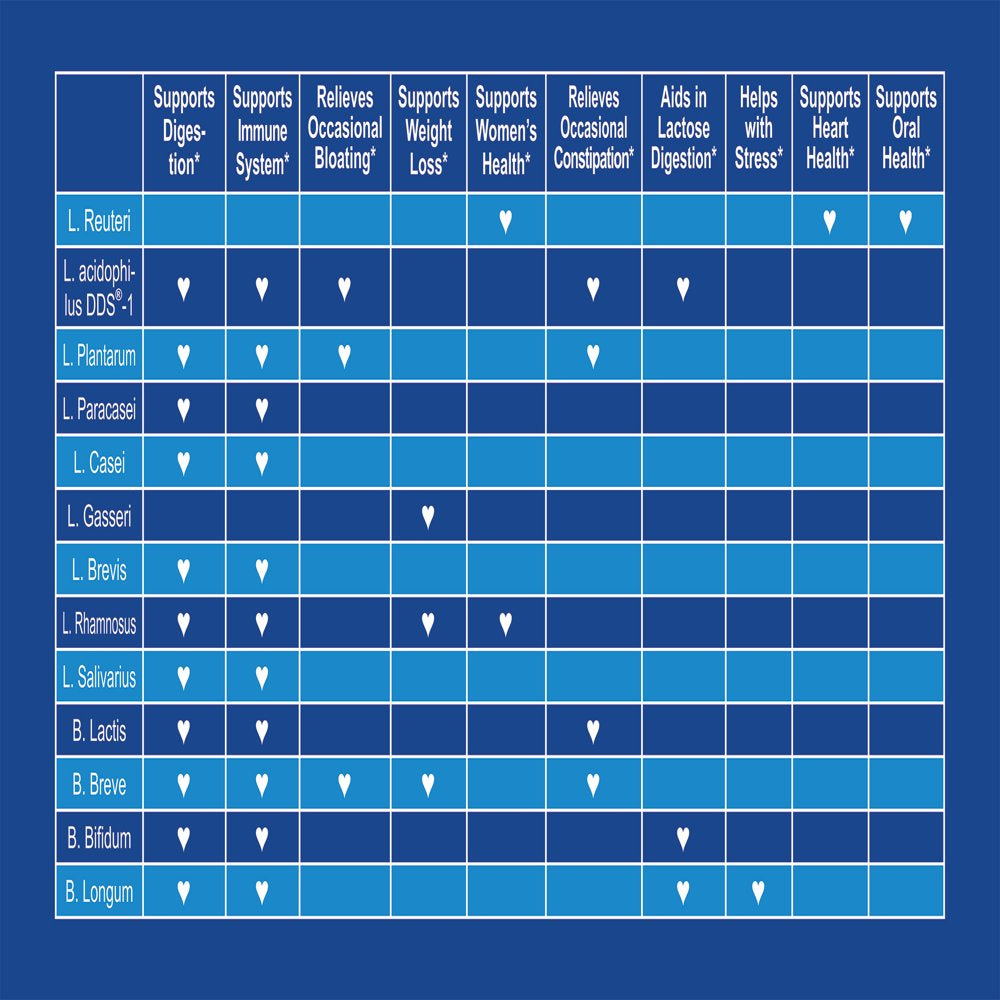 1. Promotes Heart Health*2. Promotes Weight Loss*3. 50 billion CFU per serving4. Shelf-stable for 24 months5. 13 unique strains including: Superstrain DDS-1, L. Gasseri, and L. reuteri.