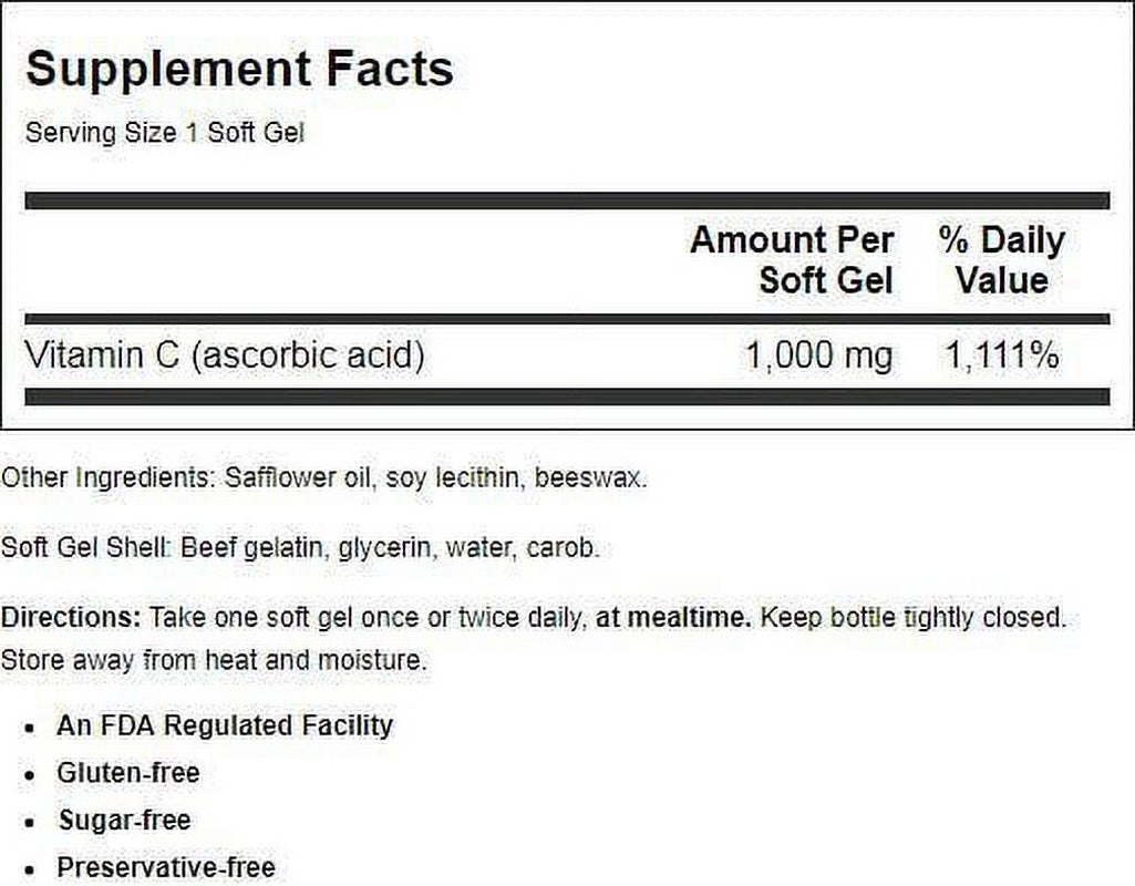 Carlson - C-Gels, 1000 Mg, Vitamin C Softgels, Immune Support, Antioxidant, 250 Softgels