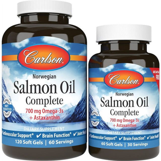 Carlson Labs - Virgin Salmon Oil Complete 1250 Mg. - Bonus Pack 120 + 60 Softgels