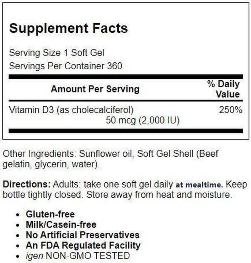 Carlson Labs - Vitamin D3 2000 IU - 360 Softgels - 360 Soft Gels is backordered and will ship as soon as it is back in stock.