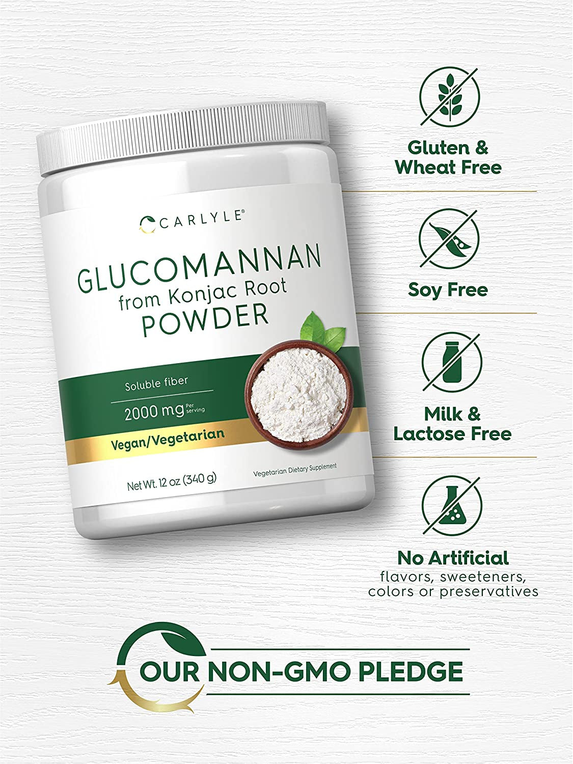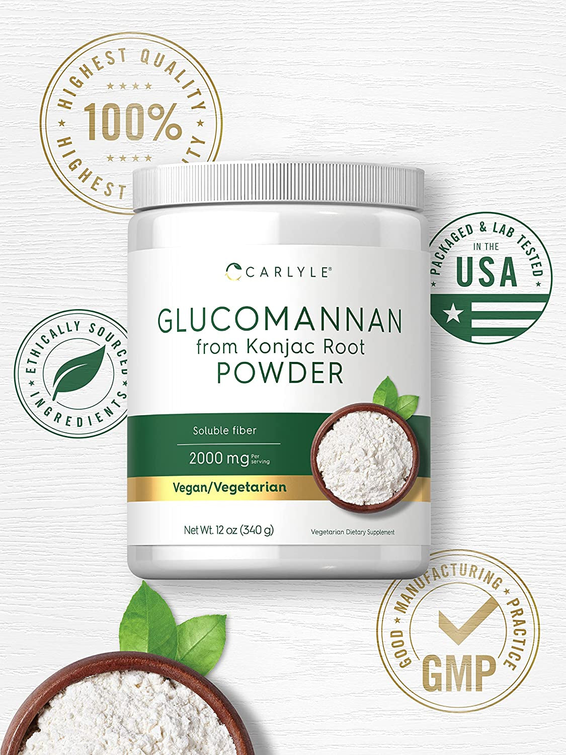 Carlyle Glucomannan Powder 12 Oz | Konjac Powder Supplement | Vegan & Vegetarian | Non-Gmo, Gluten Free