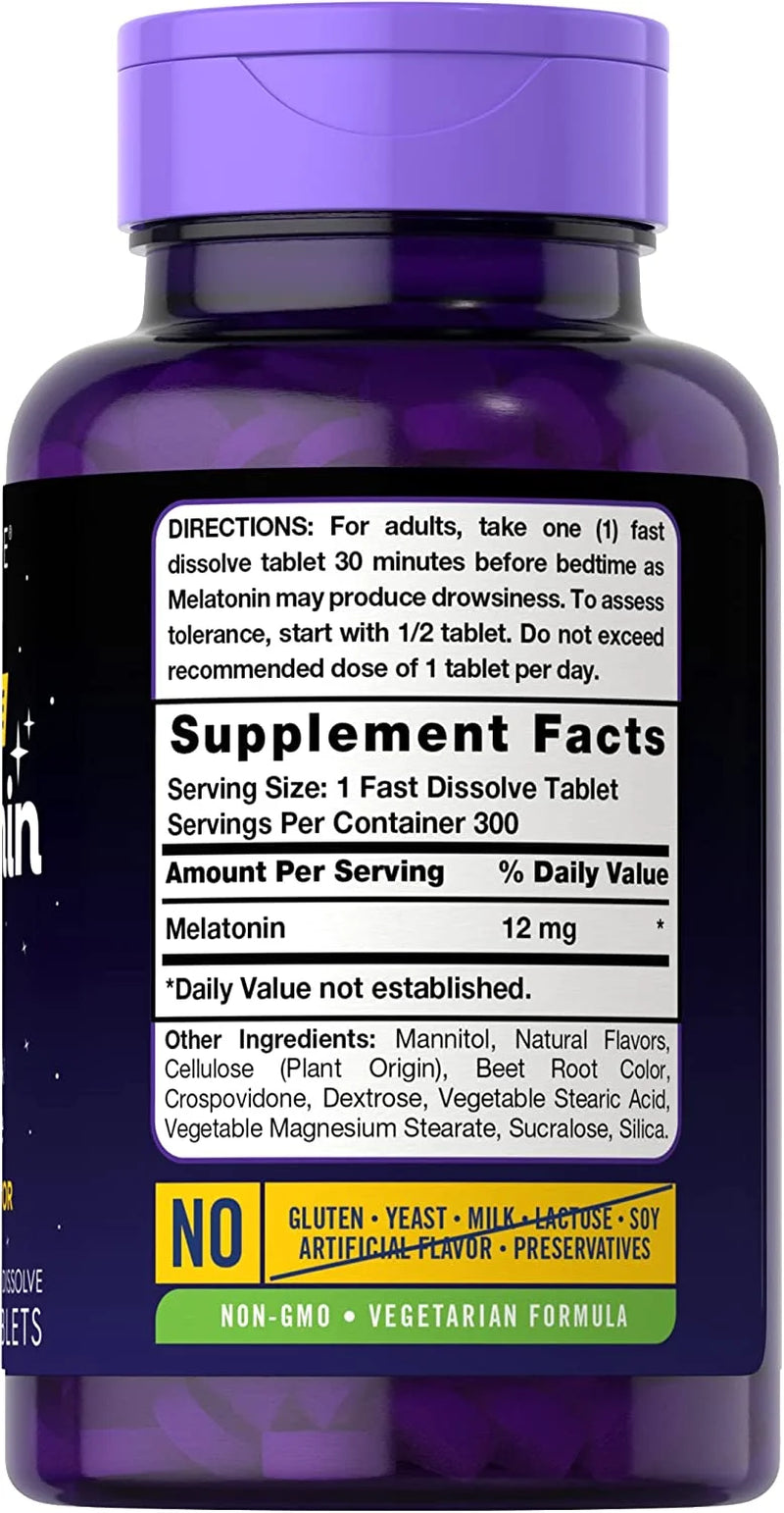 - OPTIMAL FORM: Fast-dissolve tablets deliver 12 mg of Melatonin with natural berry flavor