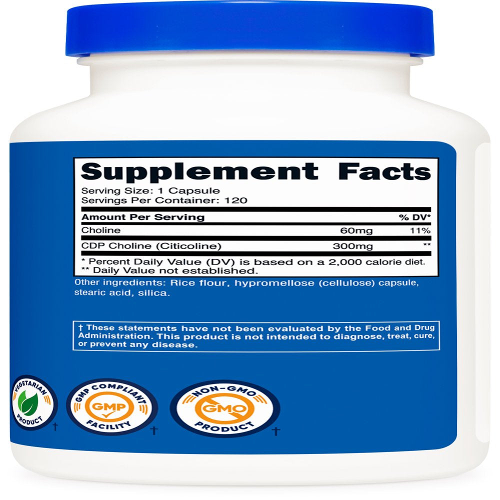 CDP Choline, Citicoline, 300 Mg, 120 Capsules, Nutricost