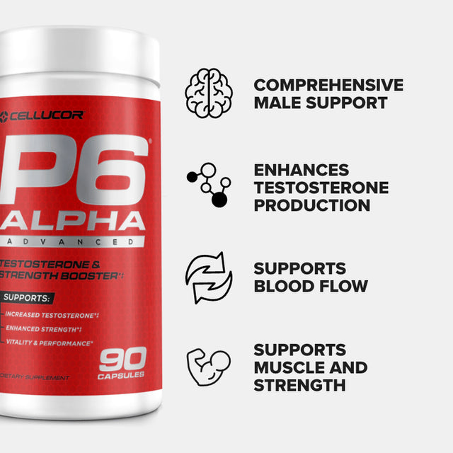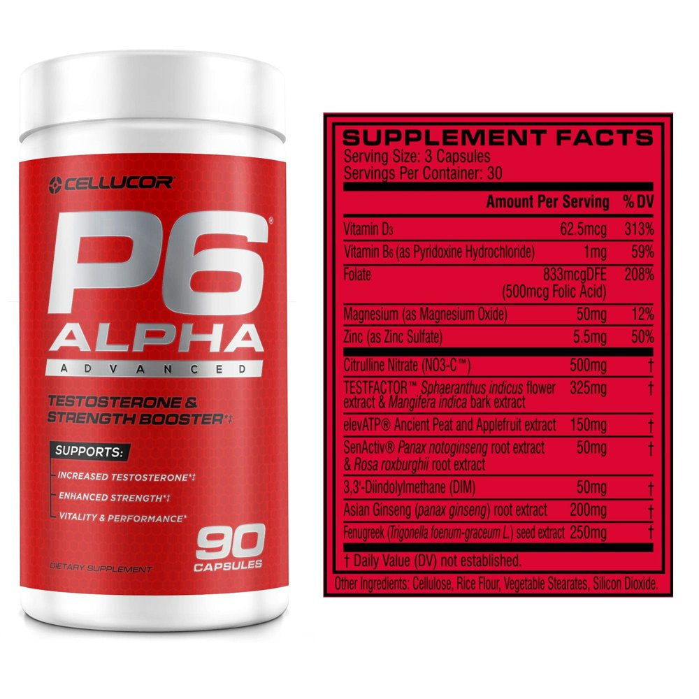 Cellucor P6 Alpha Advanced - Enhanced Support for Men Supports Muscle Growth & Strength Natural Support Supplement with TESTFACTOR, Ginseng -90 Veggie Caps