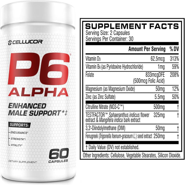 Cellucor P6 Alpha Testosterone Booster + Strength Support + Vitality + 60 Capsules + 30 Servings