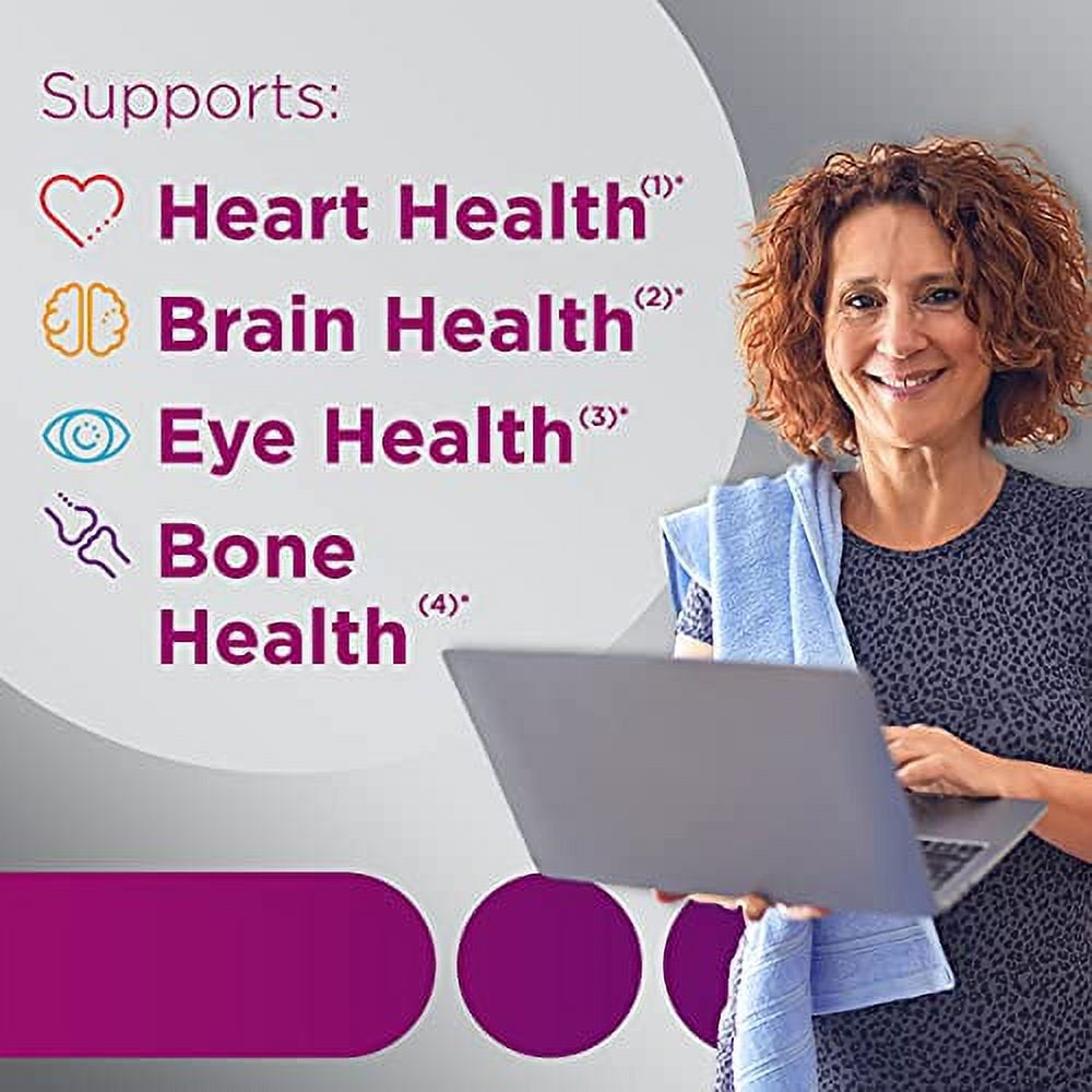 Our highest levels of vitamin D3 | Smooth coating means it's easy to take | Specially formulated to support heart+ , brain+++, eyes Y, and bone healthy= in women | During the summer months products may arrive warm but Walmart stores and ships products in accordance with manufacturers' recommendations, when provided.