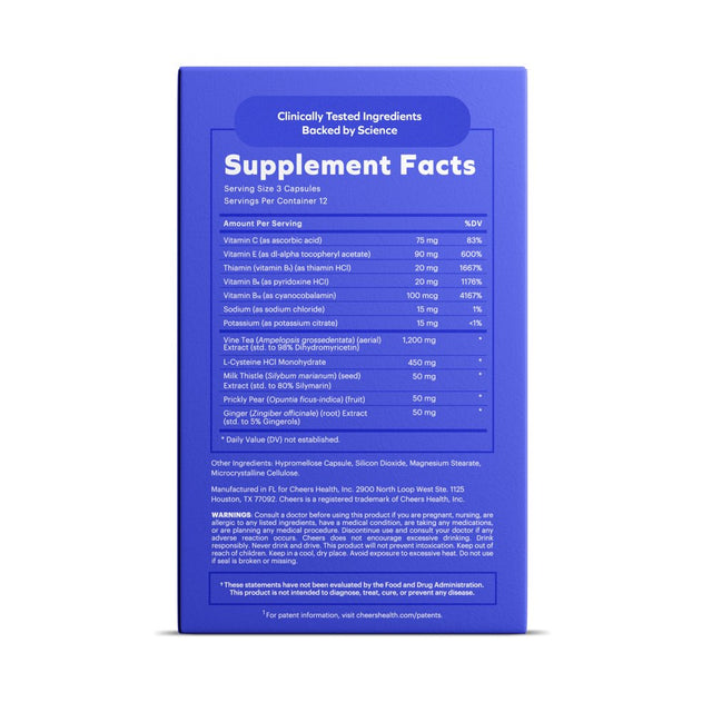 | Product Name | Cheers Restore: After-Drinking Aid + Liver Support, 1000+mg DHM & 450mg Cysteine, 12 Doses |