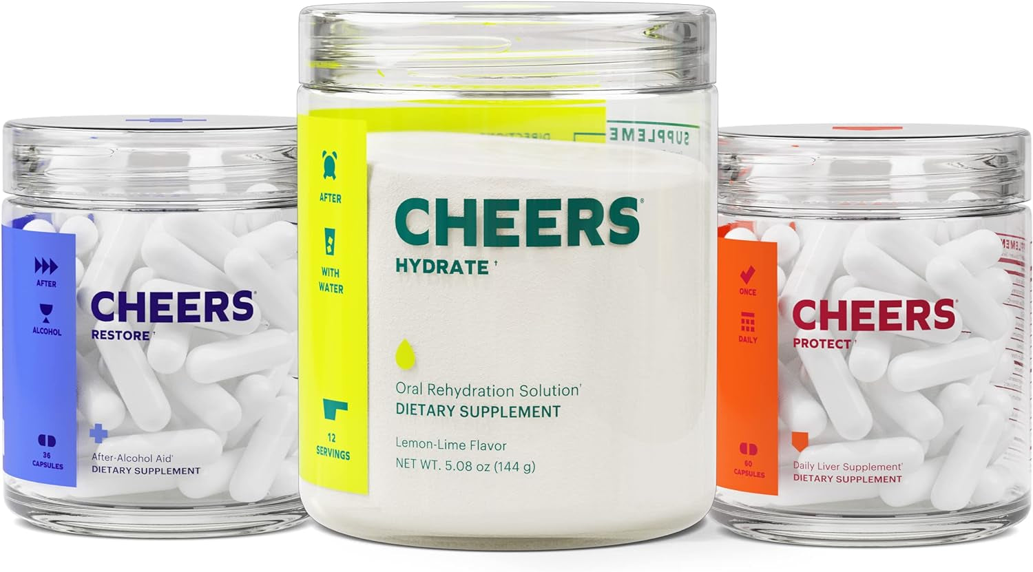 - The Cheers Super Combo includes the best of all our products! Support your liver, stay hydrated, and feel great the day after drinking. Includes full-size bottles of Cheers Restore + Cheers Hydrate + Cheers Protect.