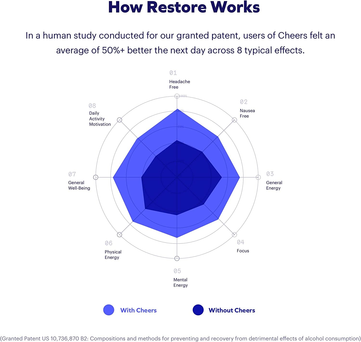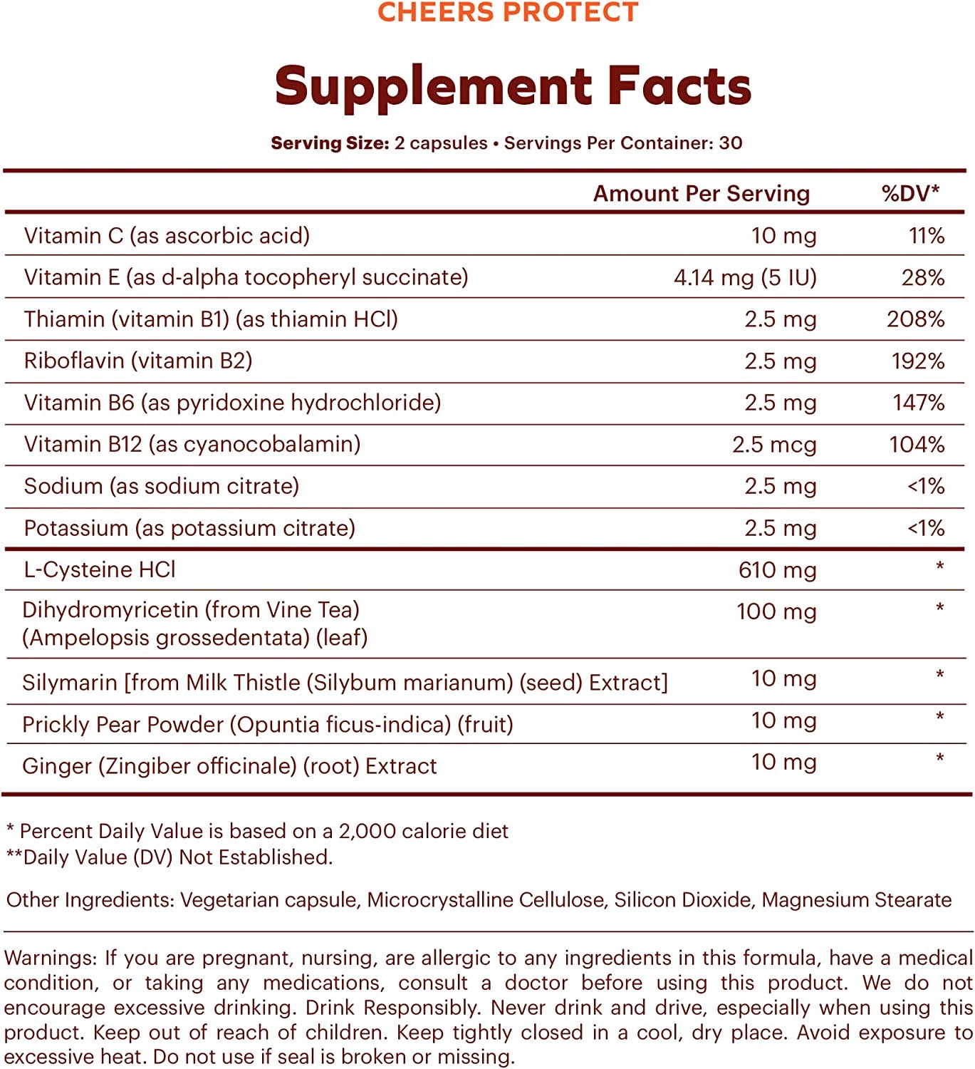 - Cheers Restore: Capsules taken after drinking to support your liver & help you feel great after drinking. Cheers Hydrate: Formulated using clinical research performed by the World Health Organization, Cheers Hydrate is designed for rapid rehydration to support overall health & immunity. Lemon-lime flavor. Cheers Protect: A daily liver supplement designed to increase glutathione levels, support overall liver health, and boost immunity.