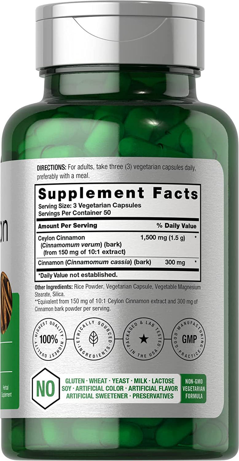 | Product Name | Cinnamon Supplement 1800mg | 150 Vegetarian Capsules | by Horbaach |