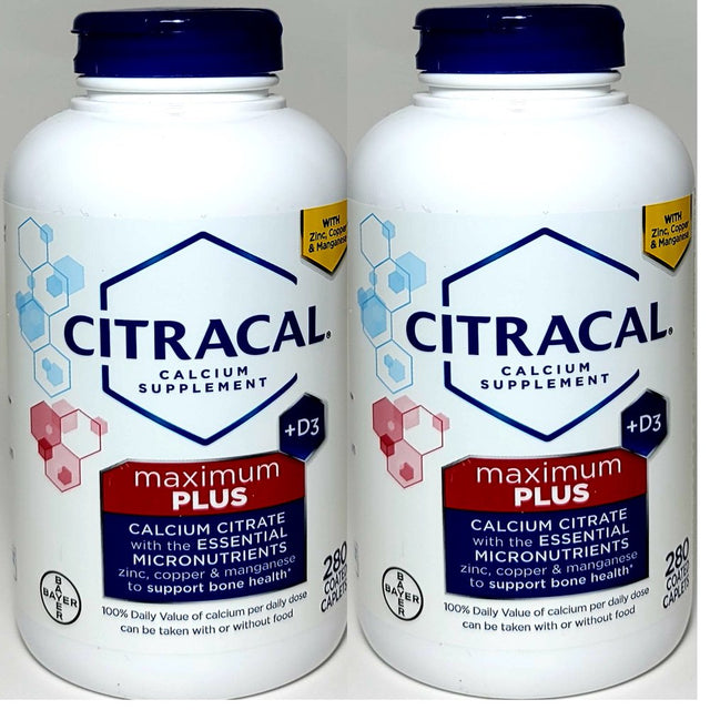 Citracal Calcium Supplement Maximum plus + D3. 280 Coated Caplets Each Bottle. Pack of 2 Bottles.