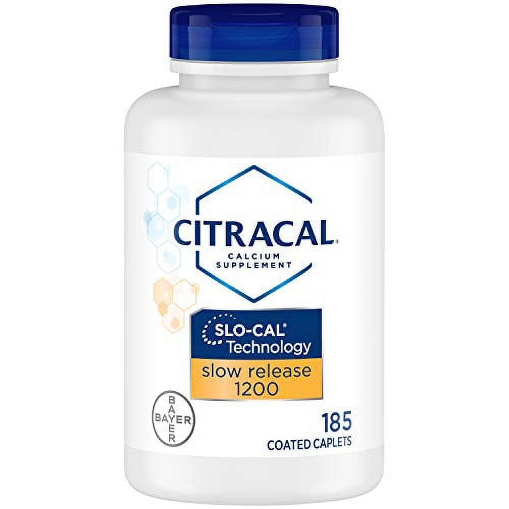 Citracal Slow Release 1200, 1200 Mg Calcium Citrate and Calcium Carbonate Blend with 1000 IU Vitamin D3, Bone Health Supplement for Adults, Once Daily Caplets, 185 Count