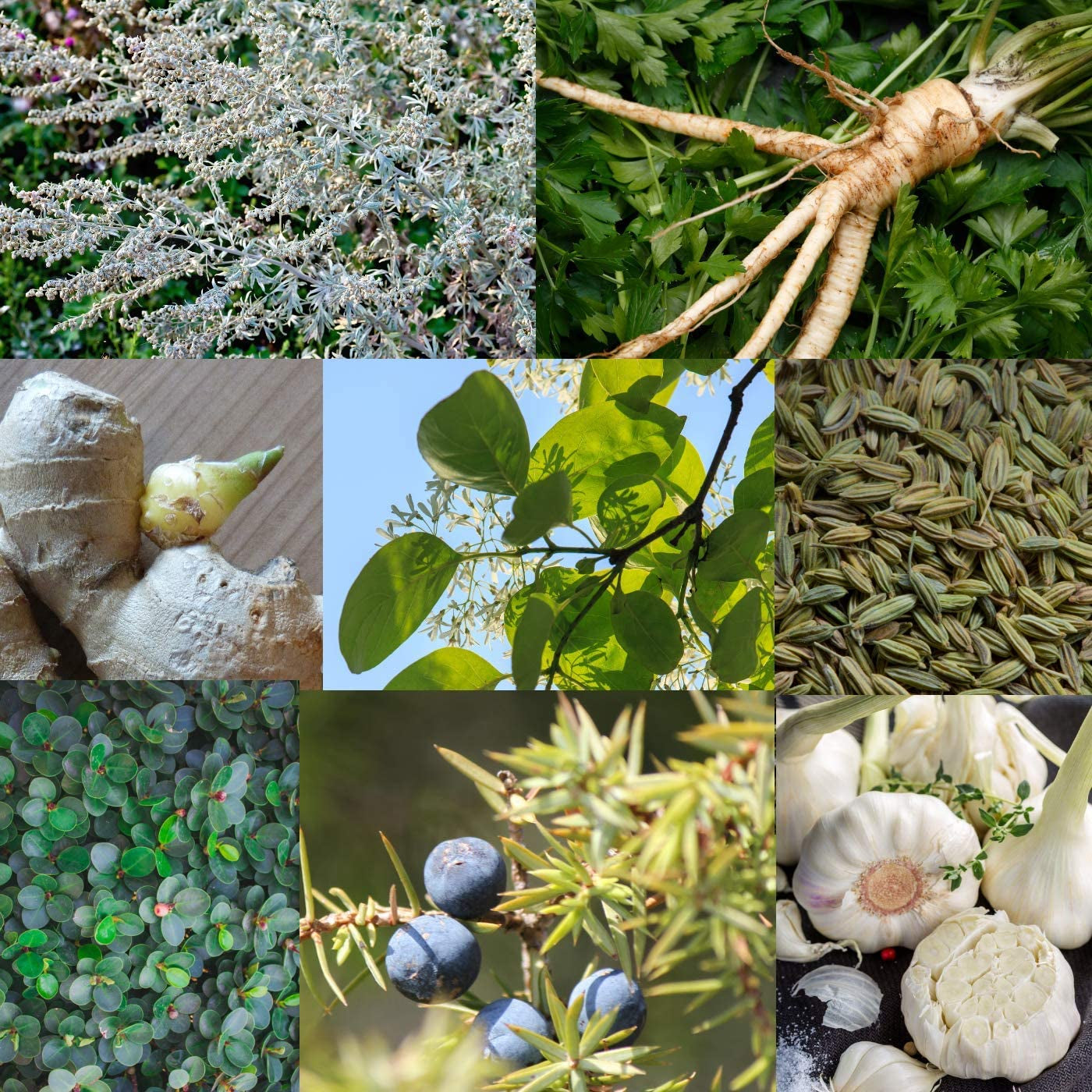 | INGREDIENTS | Roasted Dandelion root, Cardamon seed, Black Peppercorn, Cinnamon bark, Burdock root, Fennel seed, Juniper berry, Clove bud Licorice root Orange peel Pau d' Arco bark Sassafras root Ginger root Uva Ursi leaf Horsetail herb Dandelion leaf Parsley leaf | Milk Thistle seed, Fennel seed, Fringe Tree bark, Oregon Grape root, Black Walnut hull, Dandelion root, Garlic Bulb, Gentian root, Ginger root, Wormwood herb. Other ingredients: Distilled water, and 32% Alcohol | See variations | Milk Thistle seed Turkey Rhubarb root Barberry root bark Burdock root Dandelion root Juniper berry Pau d’Arco bark Garlic bulb Ginger root Parsley root Uva Ursi Oregon Grape root Black Walnut hull Fennel Fringe Tree bark Gentian root Wormwood herb |