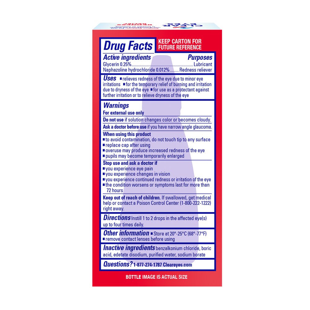 - Contains 1 bottle of Clear Eyes Redness Relief Eye Drops, 0.5 fl oz