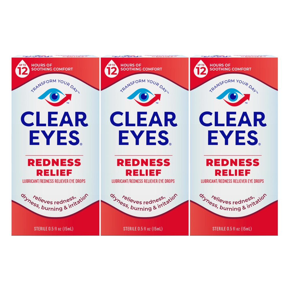 - Contains 3 bottles of Clear Eyes Redness Relief Eye Drops, 0.5 fl oz