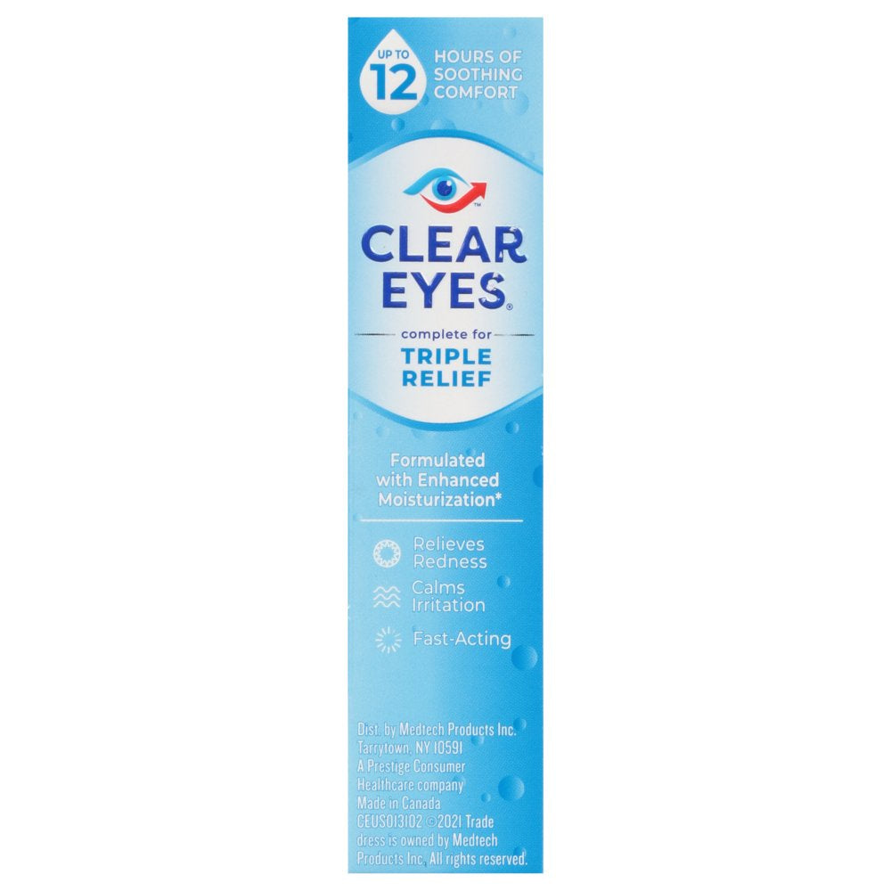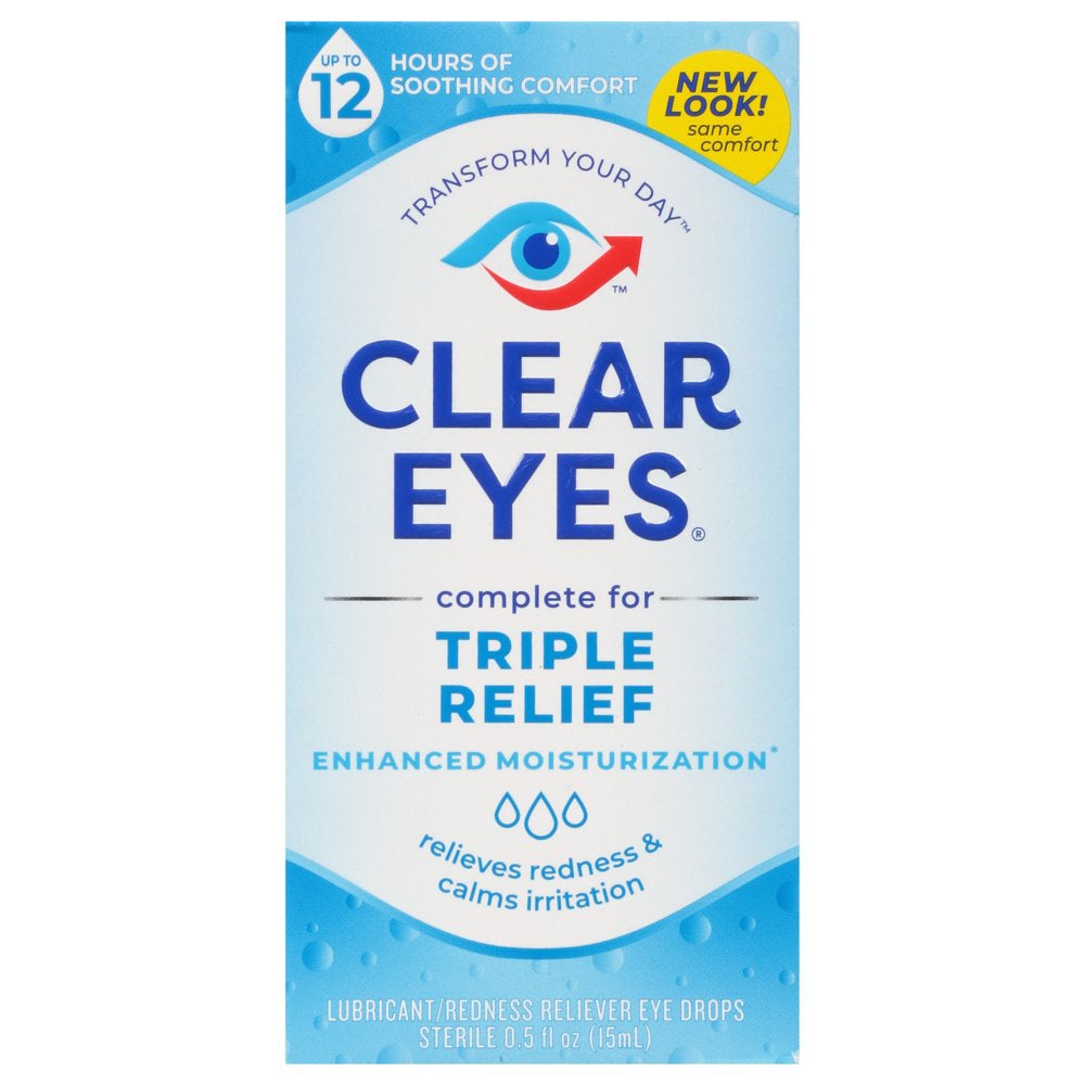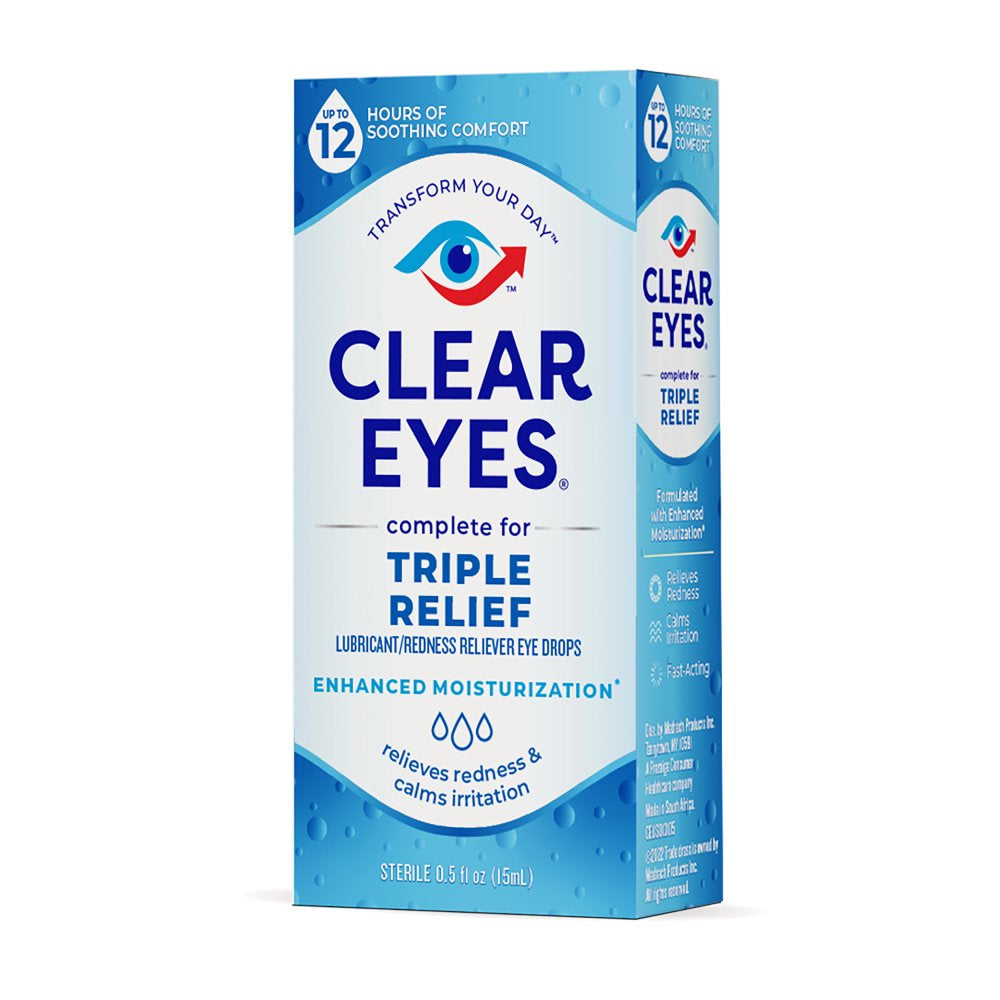 - Clear Eyes Triple Relief Eye Drops provide complete relief for dry, red and irritated eyes