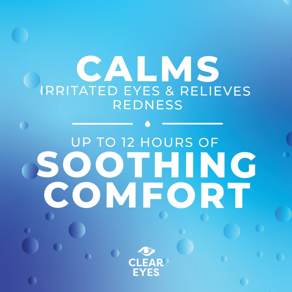 Clear Eyes Triple Relief Eye Drops provide complete relief for dry, red, and irritated eyes. Clear Eyes Triple Relief Eye Drops contains enhanced moisturized lubricants to soothe and moisturize eyes (versus Clear Eyes Redness Relief and Clear Eyes Maximum Redness Relief). Clear Eyes Triple Relief Eye Drops calm irritated eyes, relieve redness and help to protect against further irritation. As the number 1-selling brand of eye drops, Clear Eyes has provided consumers with a line of OTC eye drops for relief of a range of eye irritations. Clear Eyes Eye Drops are specially formulated to soothe a range of conditions including red, itchy, burning, gritty, irritated, and dry eyes. All Clear Eyes products provide up to 12 hours of soothing comfort. Clear Eyes products are FSA- and HSA-eligible in the U.S.