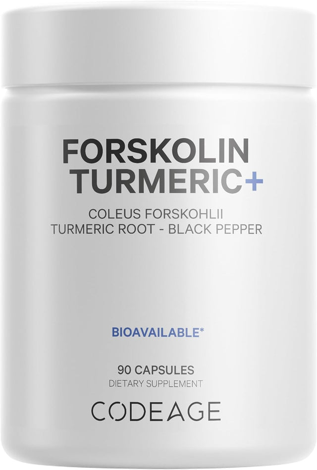 Codeage Forskolin, Pure Forskolin Coleus + Organic Turmeric Root Powder, 95% Curcuminoids + Bioperine Black Pepper for Absorption - 20% Standardized Coleus Forskohlii, Non-Gmo, 90 Capsules