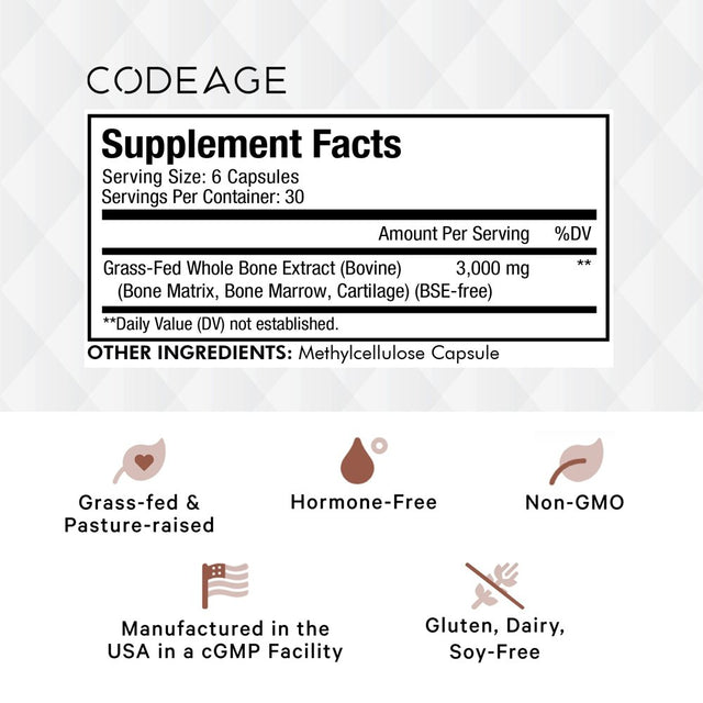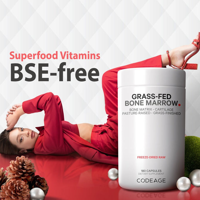 - Freeze Dried and Grass Fed Bone Marrow Capsules: Codeage Grass-Fed and pasture-raised beef Bone Marrow supplement is freeze dried, desiccated and non-defatted. This formula provides 3,000 mg of Grass-Fed bone including Bovine, Bone Matrix, Marrow and Cartilage per serving.