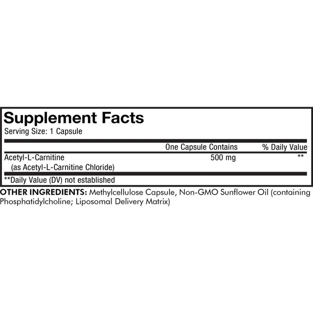 Advanced acetyl-l-carnitine amino acid supplement in capsules with liposomal delivery.