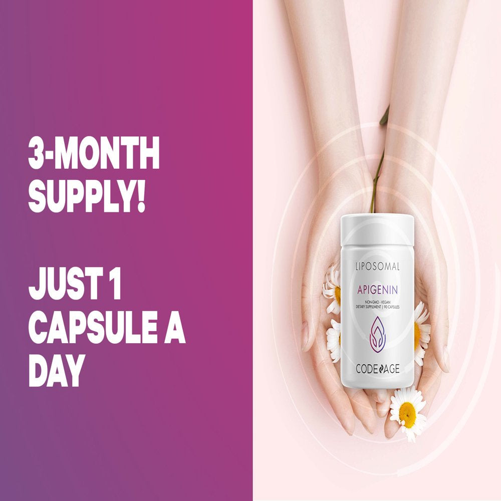 Codeage Liposomal Apigenin Supplement, 3-Month Supply, Daily Flavonoid Chamomile Extract, Phospholipids Vegan Blend, 90 Count is backordered and will ship as soon as it is back in stock.