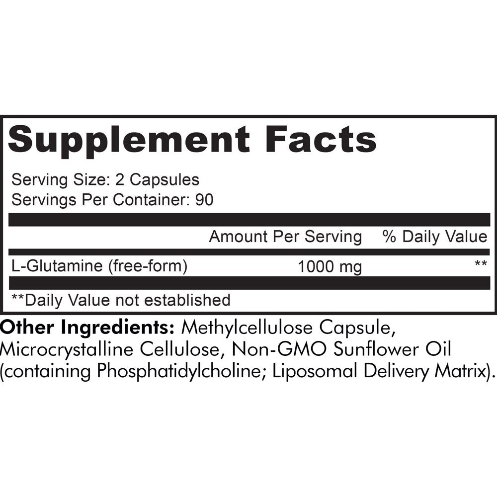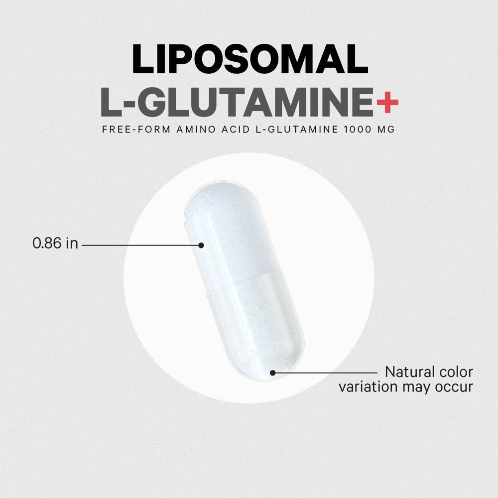 Advanced L-glutamine supplement in capsules with 1000 mg of L-glutamine and liposomal delivery.