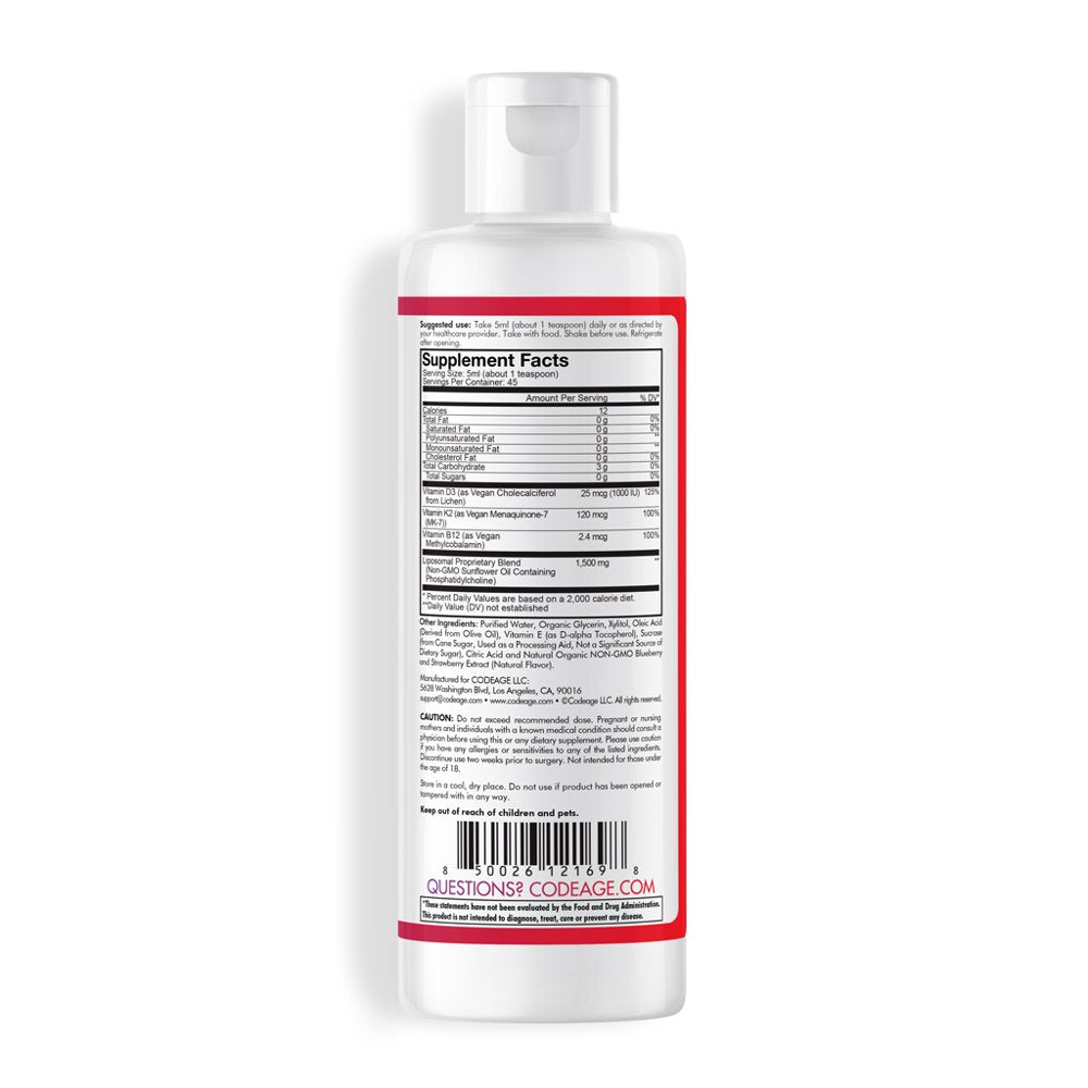 Codeage Liposomal Wonder-D Multivitamin, Vegan Vitamin D3 K2 B12 Liquid Supplement, 7.6 Fl Oz