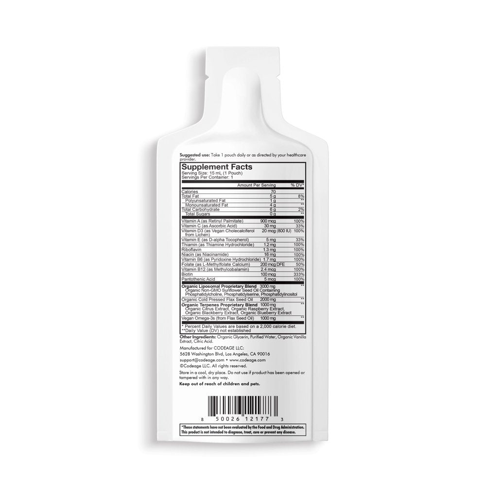 - Organic Liposomal Phospholipid Complex - Easy-to-Drink Individual Pouches: Codeage Nanofood Women's Daily Multivitamin Formula features non-GMO essential phospholipids such as phosphatidylcholine, phosphatidylserine, and phosphatidylinositol from organic sunflower seed oil to offer a modern liposomal nutrient delivery mechanism. Each box includes 30-single serve sachets for 1 month of supply. Easy to travel with at work or at the gym, Nanofood Women's Vitamins daily sachets are also easy to open and drink.