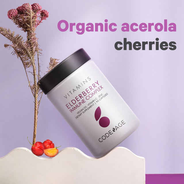 Codeage Elderberry Immune Complex capsules provides an Organic Black Elderberry blend, 2 sources of Vitamin C, Vitamin D3, and Zinc in a convenient to use capsule format.