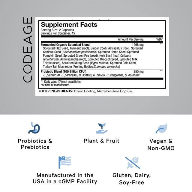 Codeage SBO Probiotics 100 Billion CFU, Soil-Based Organisms, Prebiotic, Organic Fermented Botanicals, 90 Ct