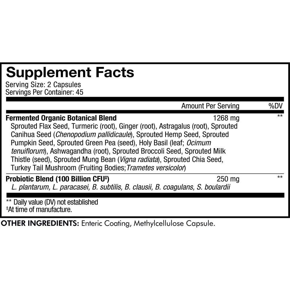 - The organic botanical blend includes vegan probiotic ingredients such as sprouted milk thistle, turkey tail mushroom, green pea, ginger and sprouted chia seed for a variety of health benefits